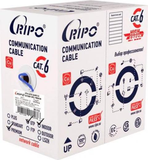 Ripo Витая пара синего цвета Premium UTP 4 CAT6 23AWG Cu Fluke test длиной 305 м - неэкранированный четырехпарный кабель из меди с изолированными жилами